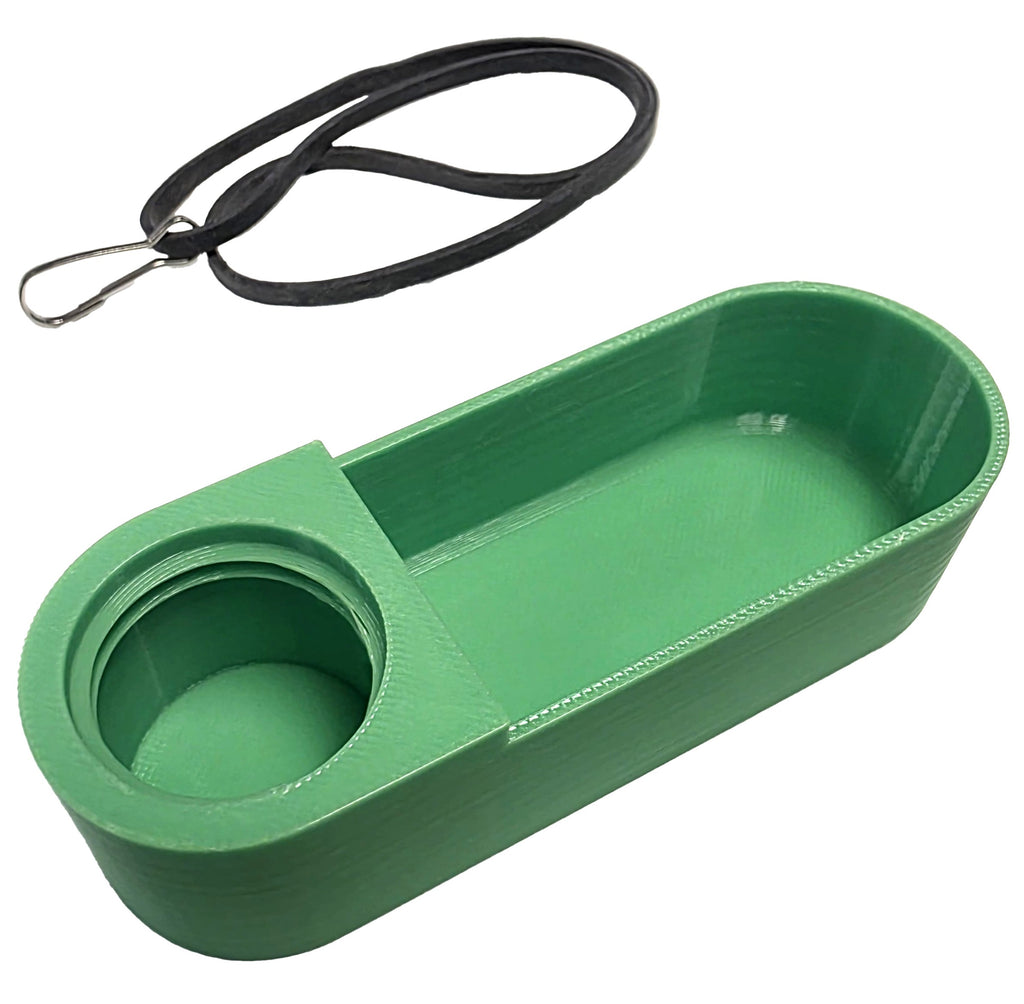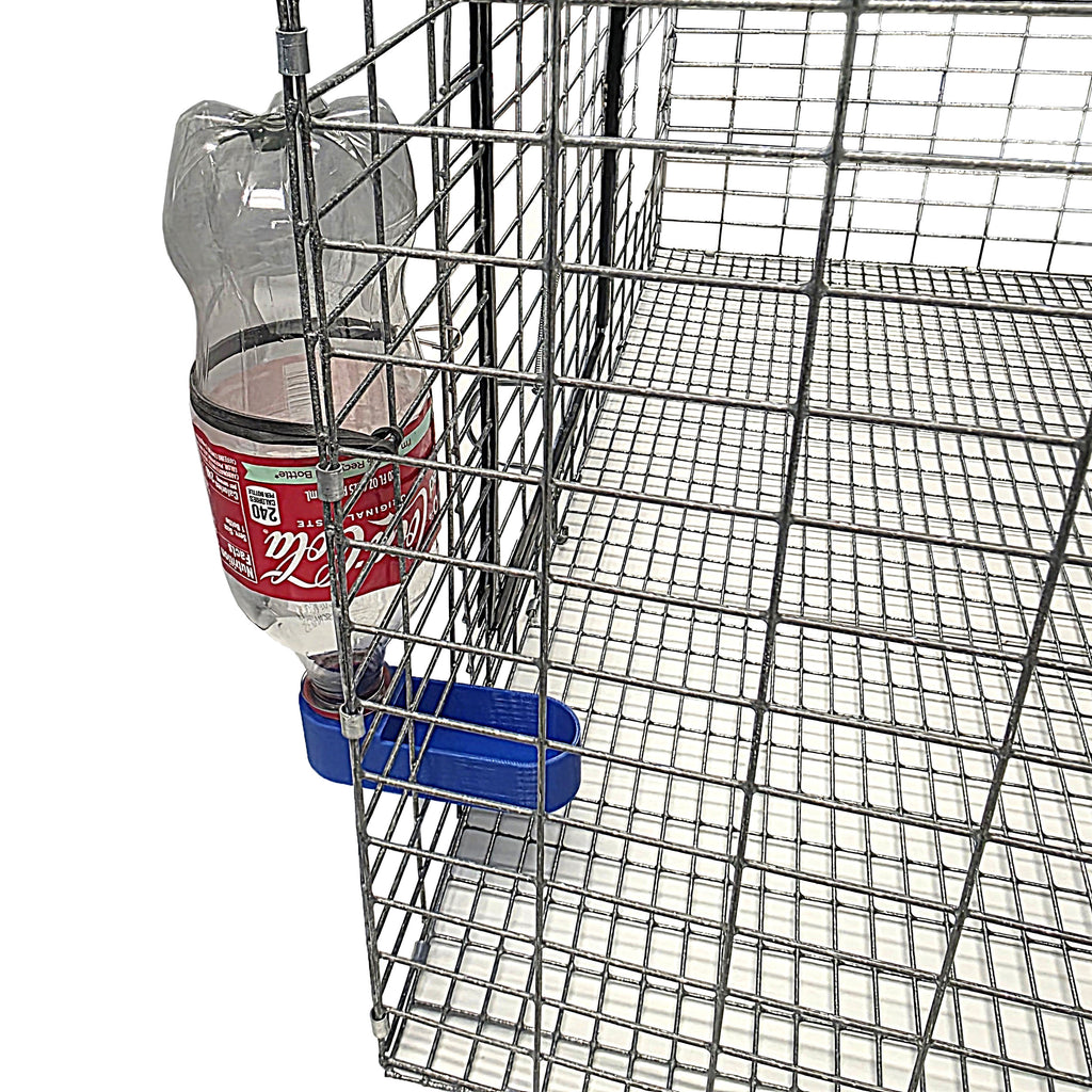 Rite Farm Products soda pop/water bottle fountain drinkers with flexible bottle mounting band with clasp. Simply connect your old soda or water bottle to the fountain and you are giving your bird/pet a waterer and keeping your soda bottles out of a landfill. For convenience and economy. This drinker lets you use a bottle hanging on the outside of your bird and small animal cages. The drinker is of smooth plastic, threads securely on the neck of 20-ounce, 1 liter, and 2-liter plastic soda bottles, and water bottles that have the same threads as a soda bottle. Does not thread onto flimsy style 16.9-ounce bottles with the small fine threads. A flexible band is furnished for looping around the bottle to hold it on the cage. Easy to refill, easy to clean. Fits thru a standard1 inch squared or larger cage opening. If you cage has squared openings smaller than 1" no big deal, just snip out the wire to give you a 1" or greater opening. For instance, if you have a 1/2" spaced wire cage you snip out 2 by 3 squares giving you a 1 x 1.5-inch opening.